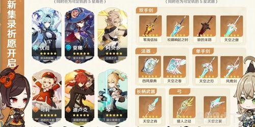 2. 五星角色卡池:这次卡池中,五星角色卡池将会有两位五星角色加入。其中一位是来自蒙德的“琴”,另一位则是来自稻妻的“雷电将军”。这两位五星角色的加入,无疑将为我们的队伍带来更多的战术选择。
